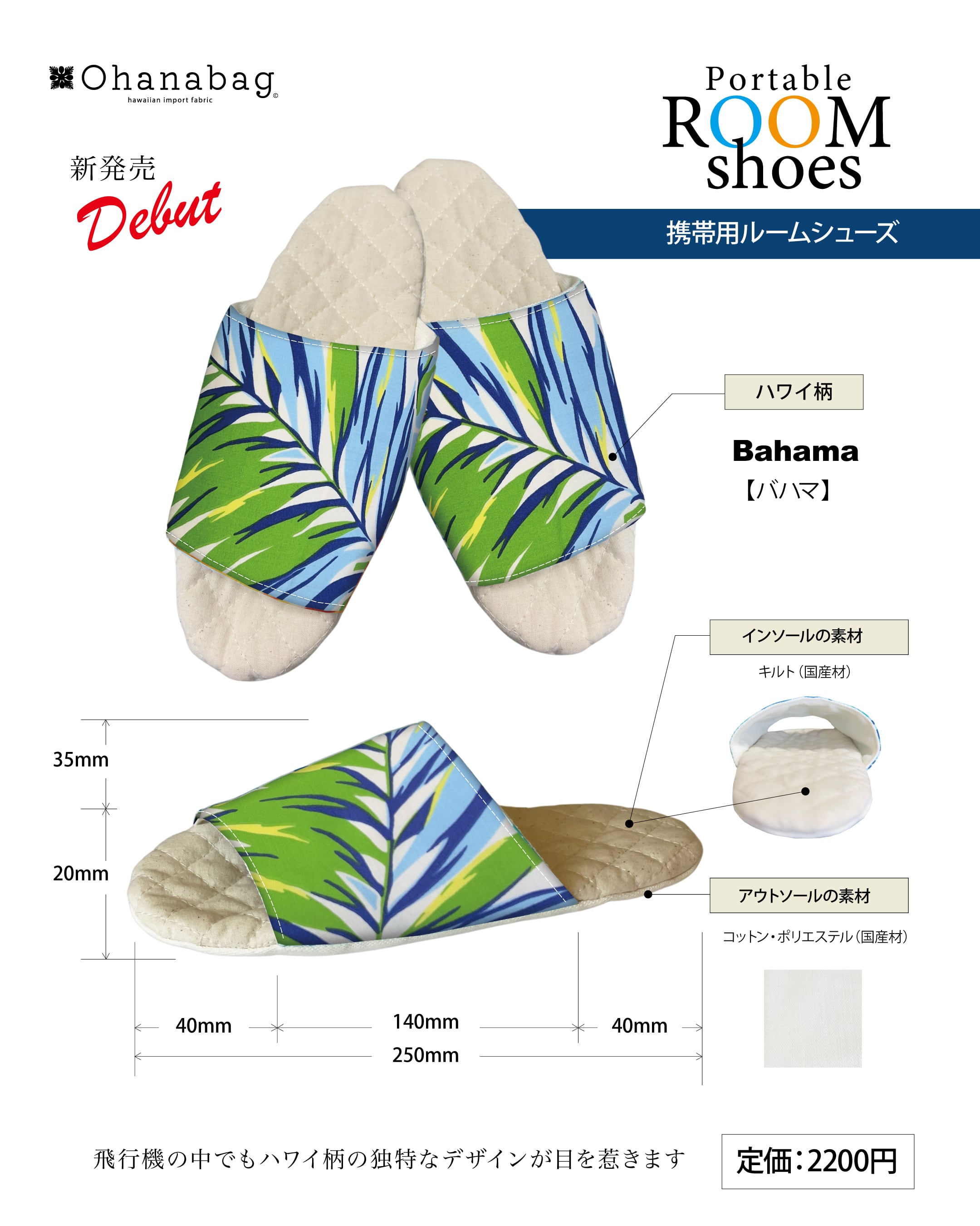 ◎商品名:Hawaiian_OhanaBag/PRS_010【定価:2200円】<携帯用ルームシューズ:1足>