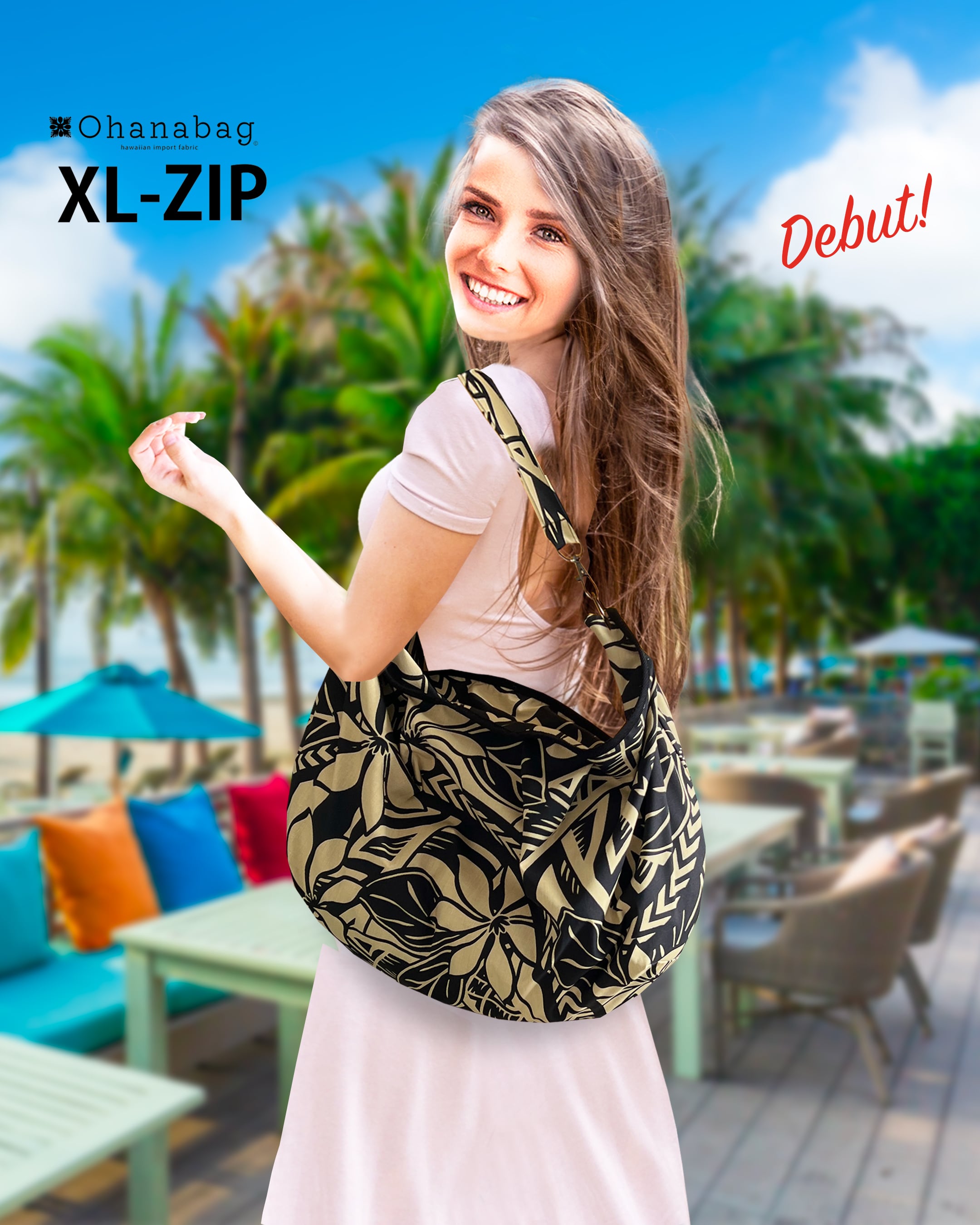 Ohanabagのファーストモデルとしてロングセラー商品だったXLサイズ(現在は販売終了)がZIPタイプになって新登場。サイズとしてはXLLよりも小さくL-fitやL-toteよりも大きい・・・1泊旅行くらいの荷物ならば十分足りる容量です。
